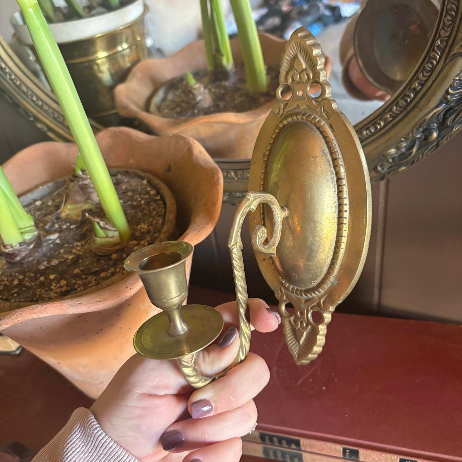 Vintage Ornate Brass Wall Sconce Candle Holder Patina Home Wall Decor
