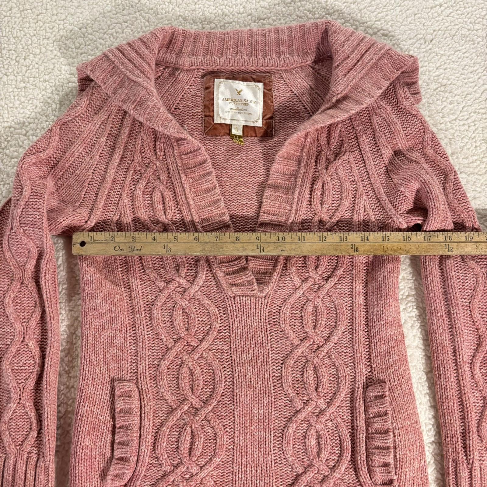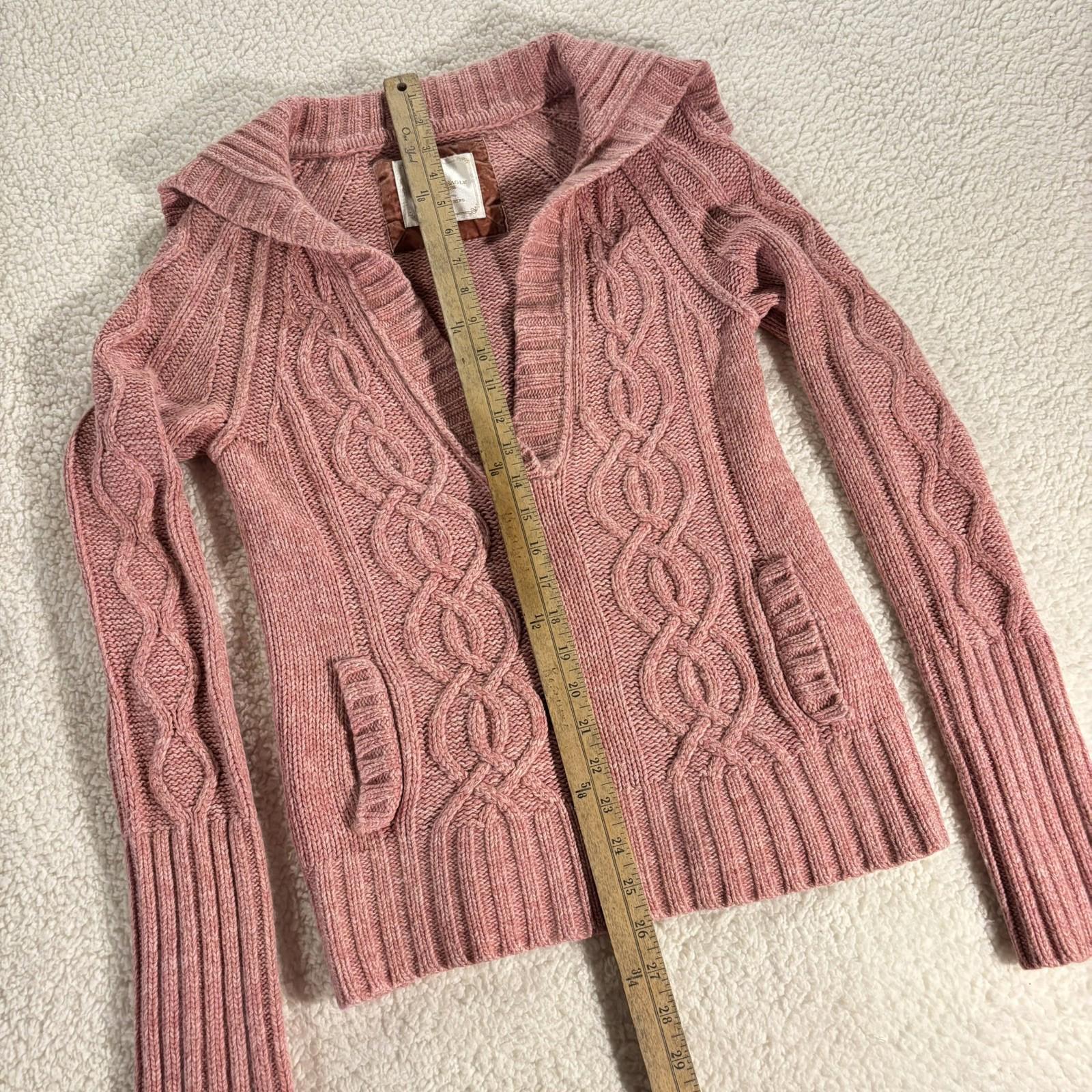 American Eagle Outfitters Sweater Womens L Y2K Cable Knit V Neck Vintage Pink. Straight from the early 2000's. Perfect layered with a white tank underneath. Measurements are in Photos. Thank you!