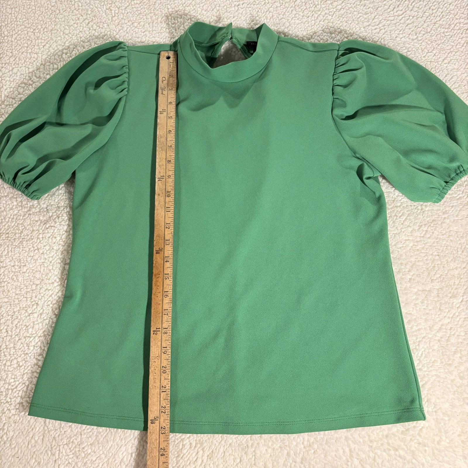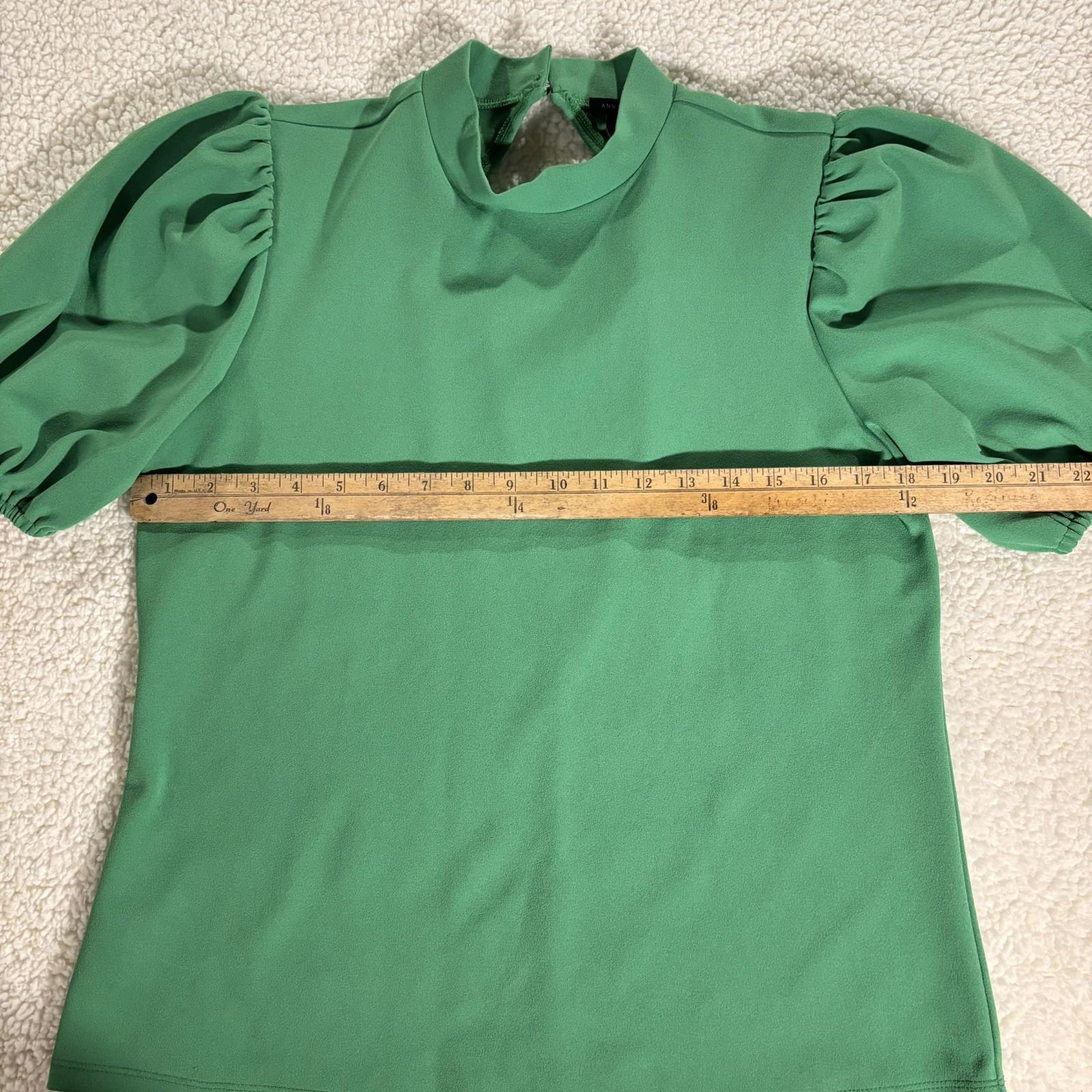 Ann Taylor Puff Sleeve Green Top Blouse Size M EUC Workwear Classic Preppy. This top is a true Kelly Green. There is a tiny spot on the back as depicted in photos. Measurements are in photos. Thank you!