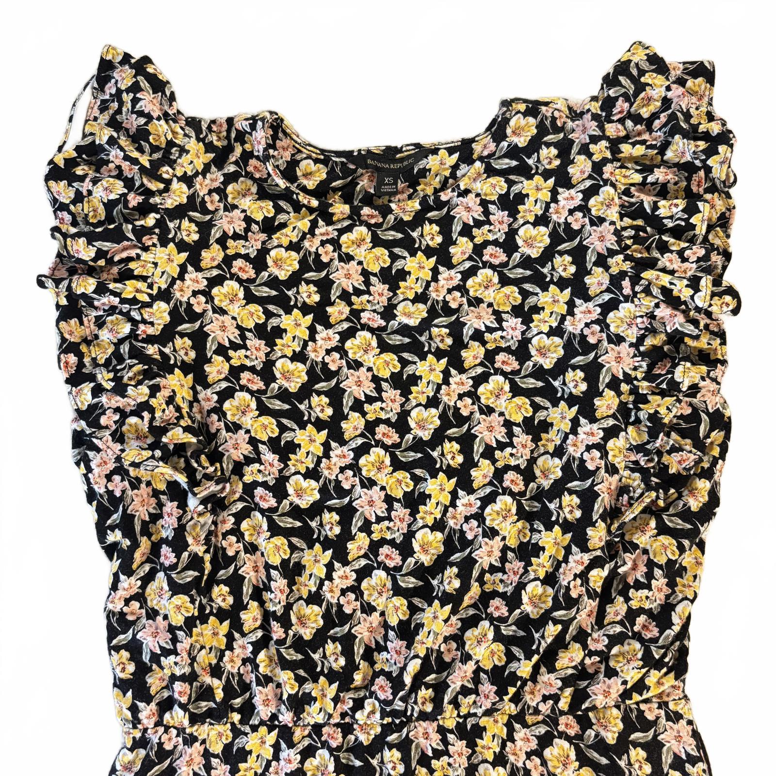 Banana Republic Flutter Sleeve Shift Dress Womens XS Floral Midi Fairy Cottage