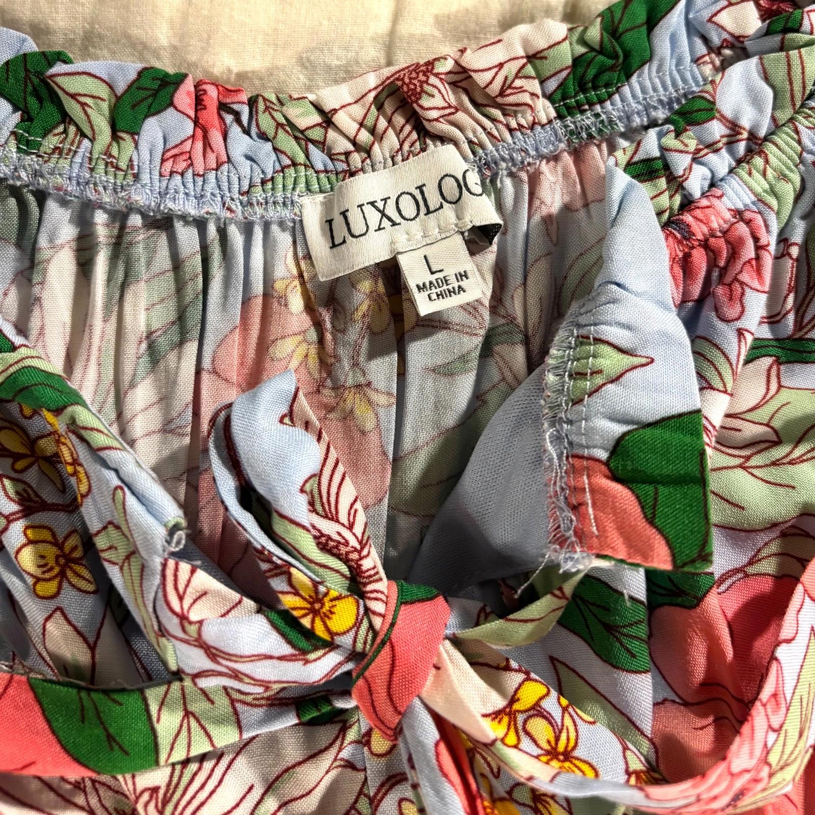 Luxology Bold Floral Summer Beach Dress - Size Large - Blue and Pink