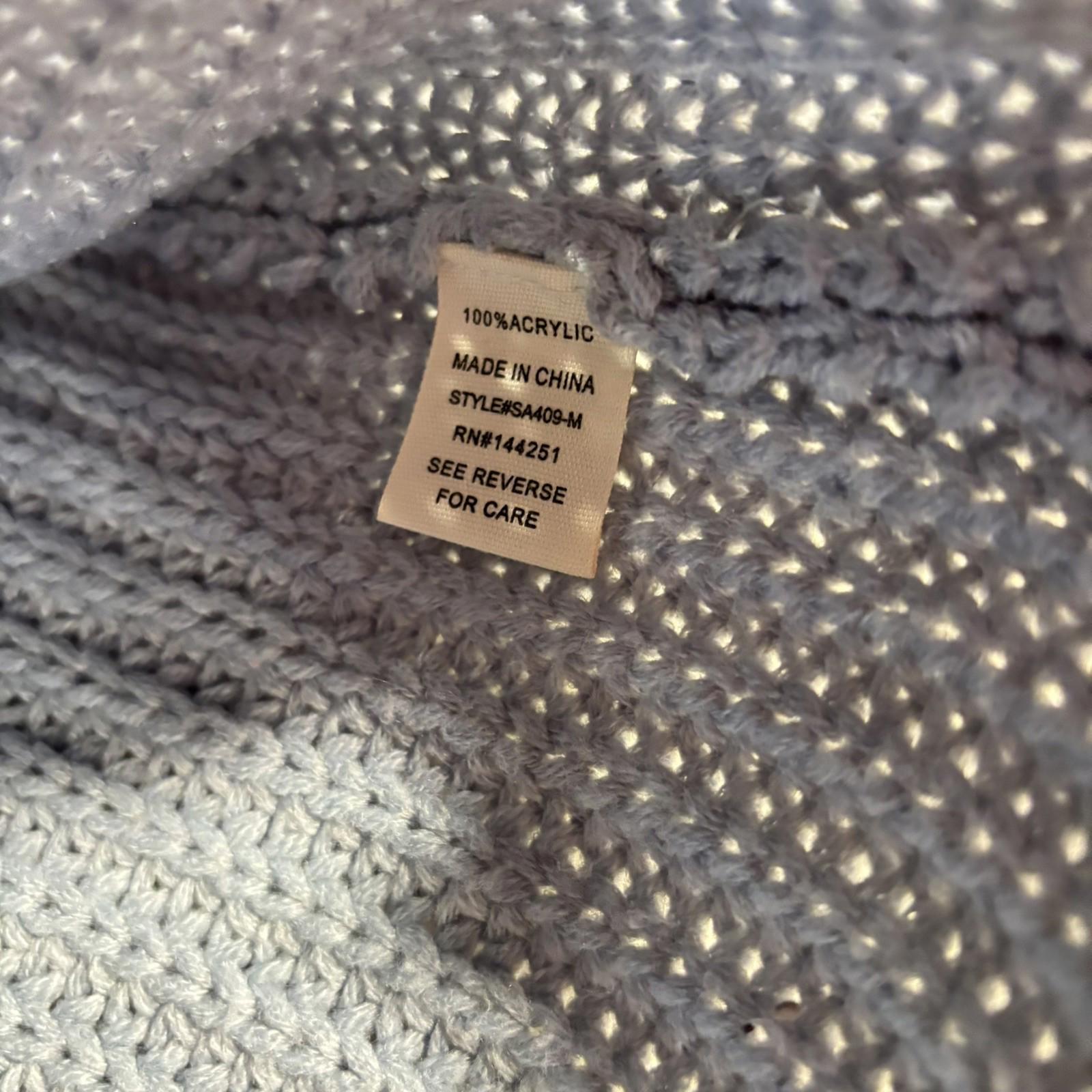 Moon & Madison Blue Puff Balloon Dot Sleeve Cropped Sweater Cozy Medium. Measurements are in the photos. Thank you.