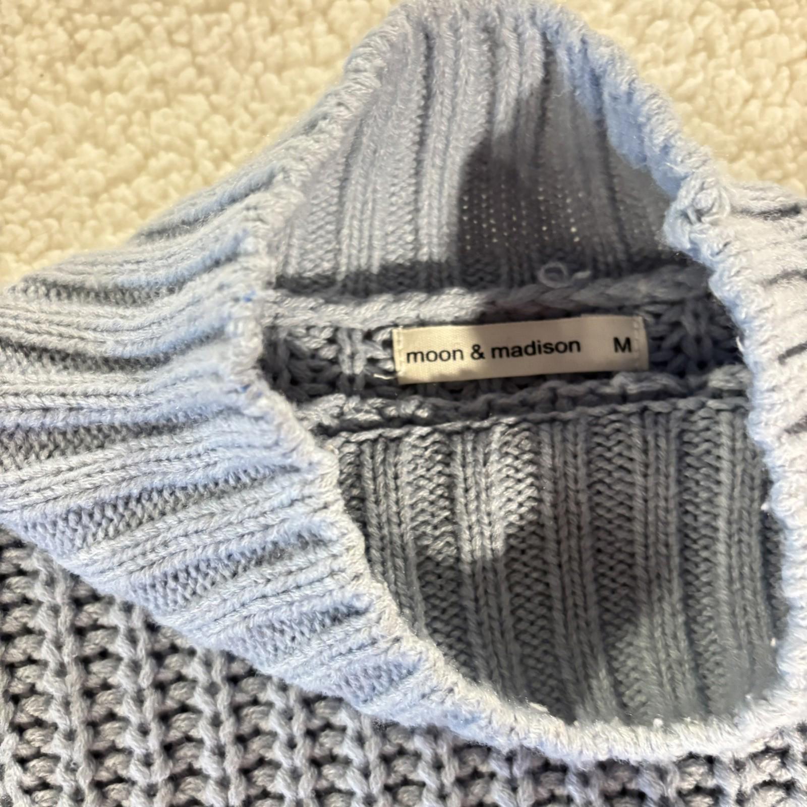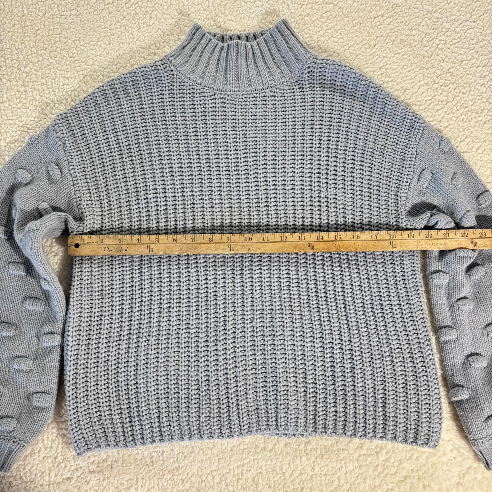 Moon & Madison Blue Puff Balloon Dot Sleeve Cropped Sweater Cozy Medium