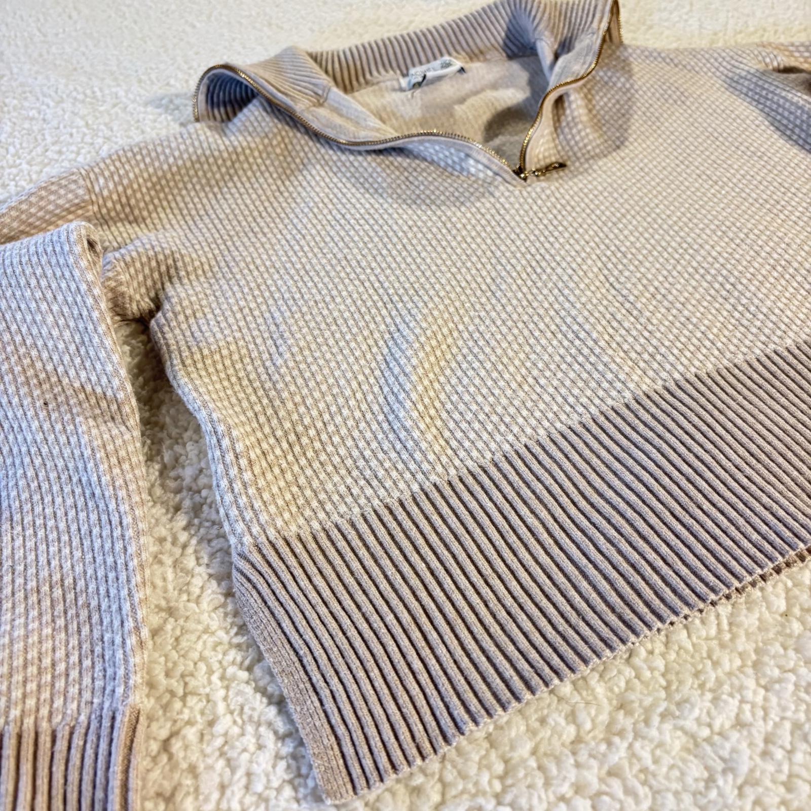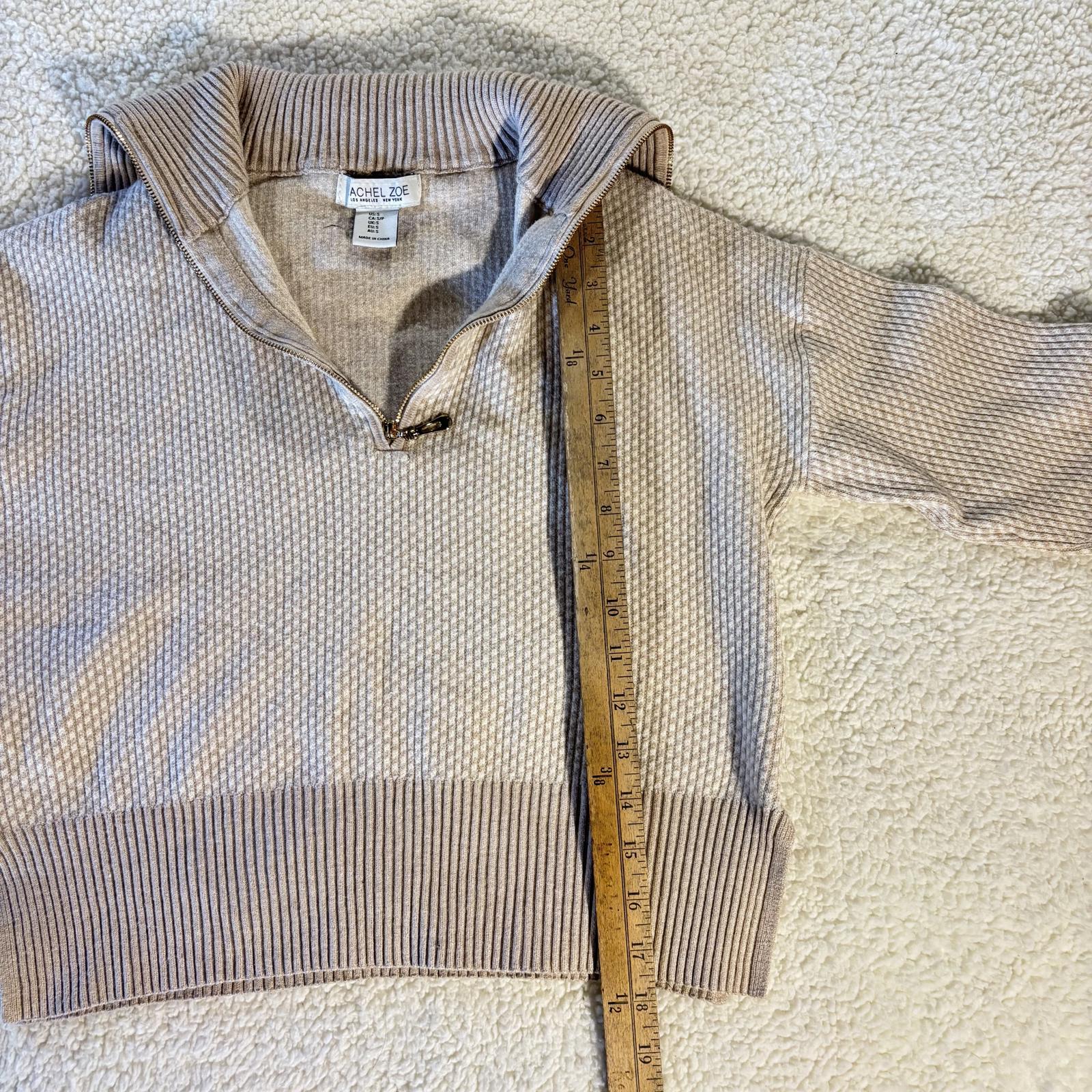 Rachel Zoe Cropped 1/4 Quarter Zip Sweater, Cream/Beige, Small Preppy Casual