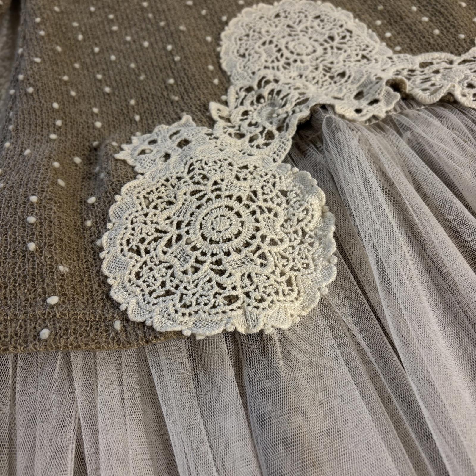Ryu Ruffle Knit Dress size S Crochet Flowers Anthropologie Tulle Boho Whimsy