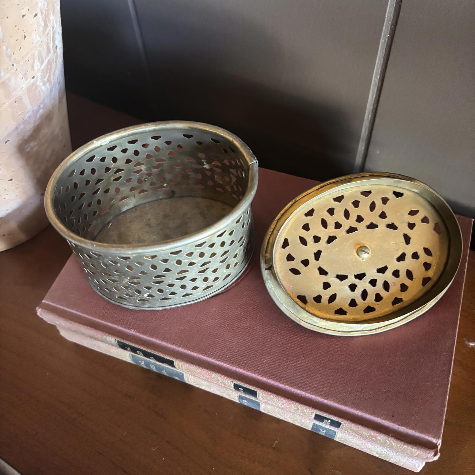 Vintage Pierced Brass Oval Box with Lid for Potpourri or Trinkets