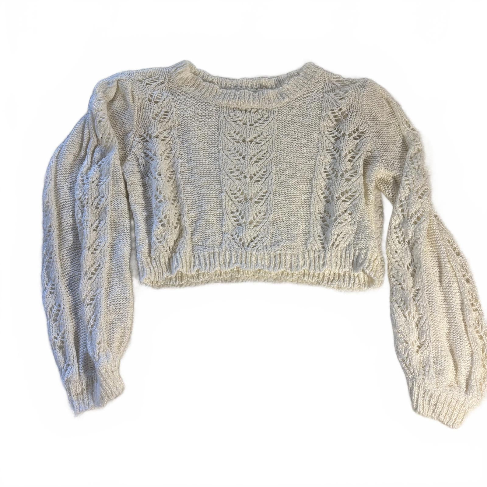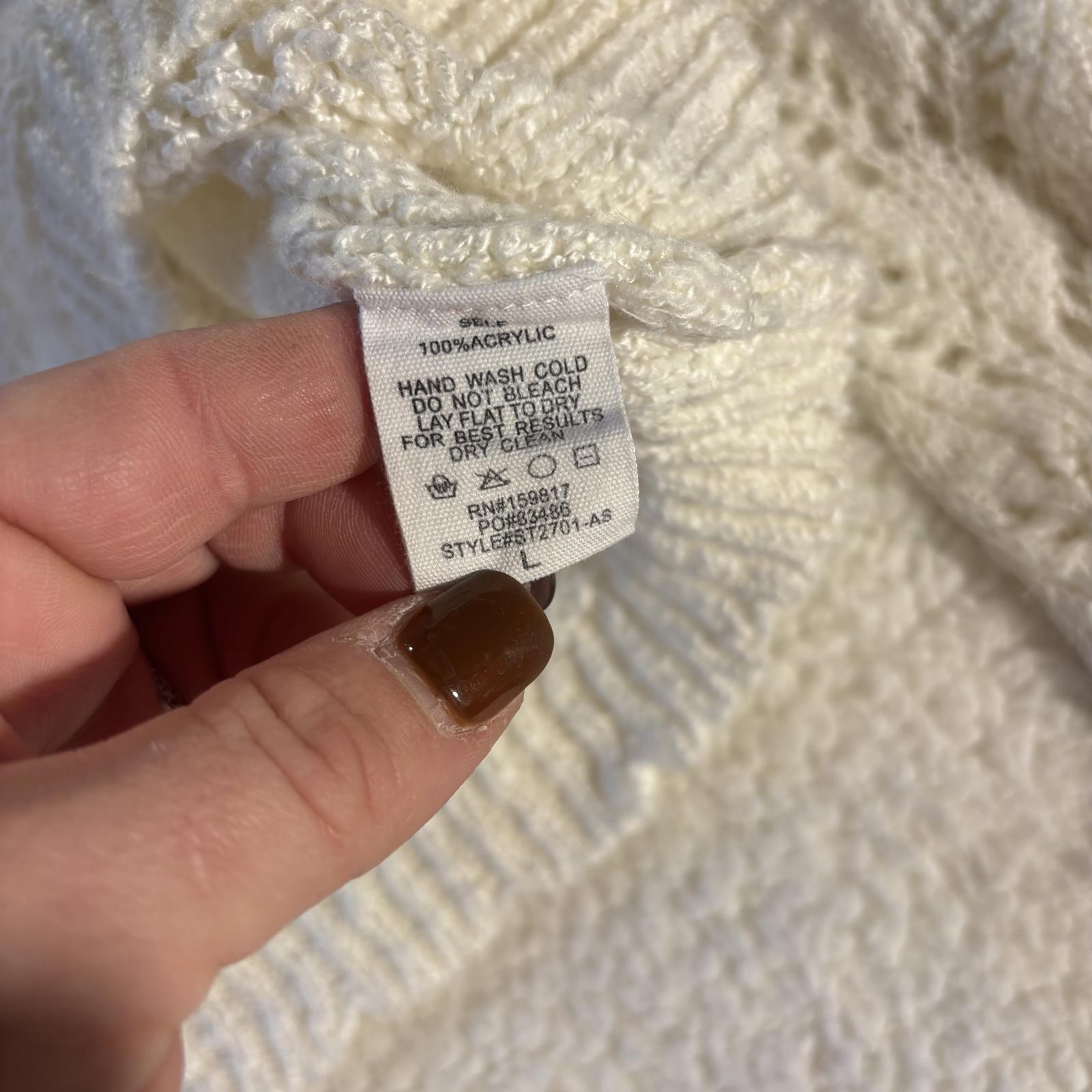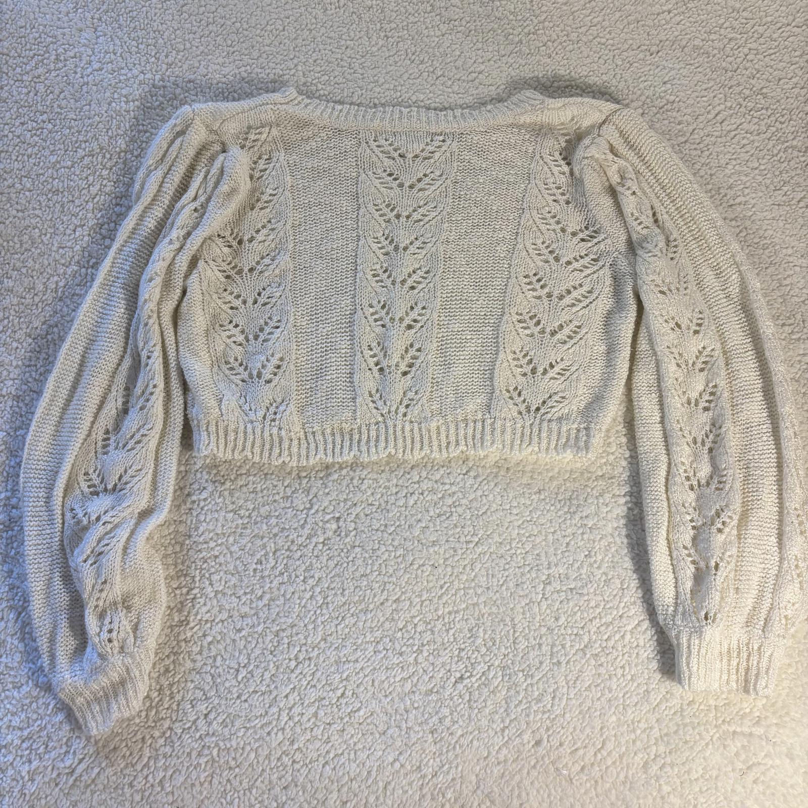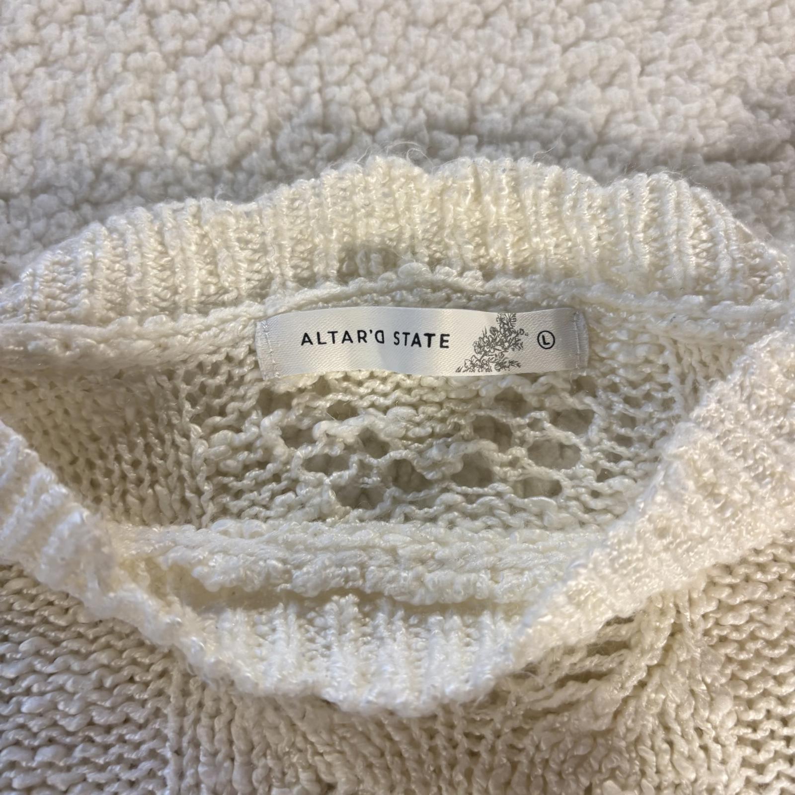 Women’s Altar’d State Knit Cropped Sweater Size L Ivory Scalloped Hem